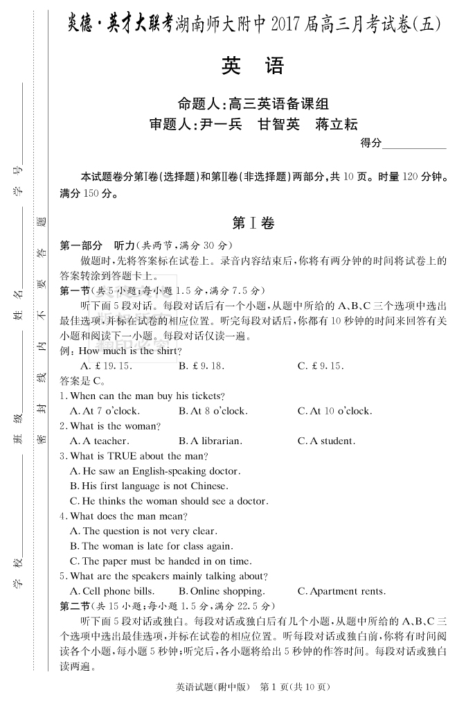 | 資源類別: | 名校月考 | |