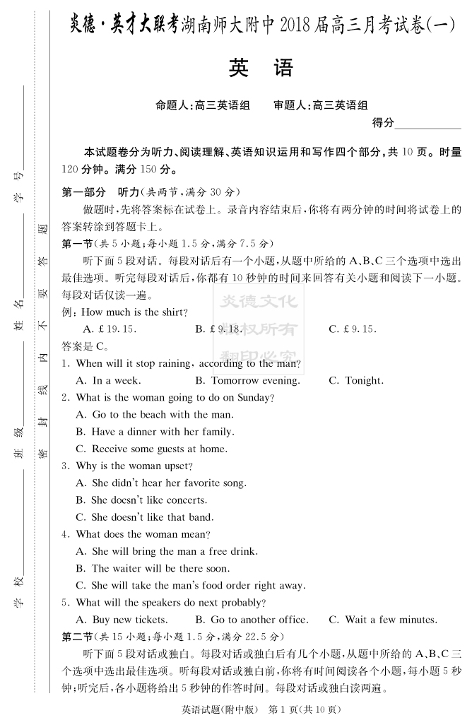 | 資源類別: | 名校月考 | |