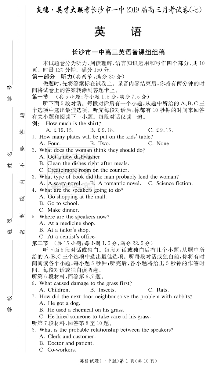 | 資源類別: | 名校月考 | |