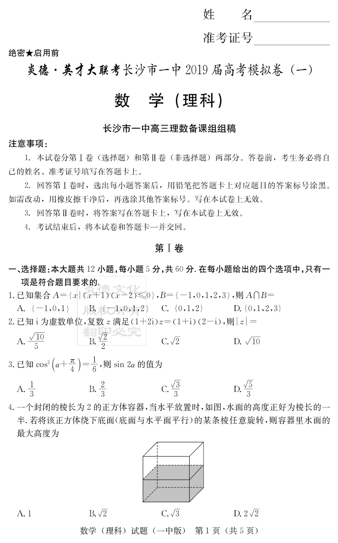 下一篇:【理綜】炎德英才大聯(lián)考2019長沙一中高三10次月考(模擬一)