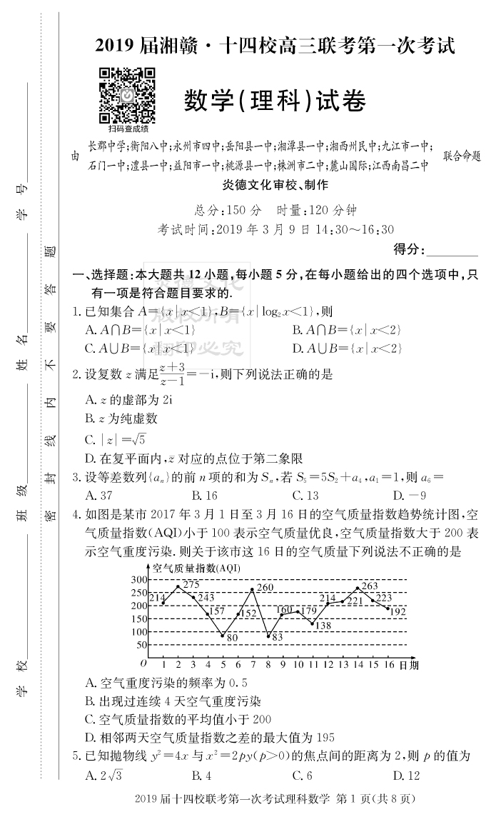 【理數(shù)】炎德英才大聯(lián)考2019長郡中學(xué)高三7次月考(十四校聯(lián)考一)