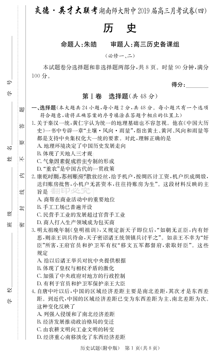 | 資源類別: | 名校月考 | |