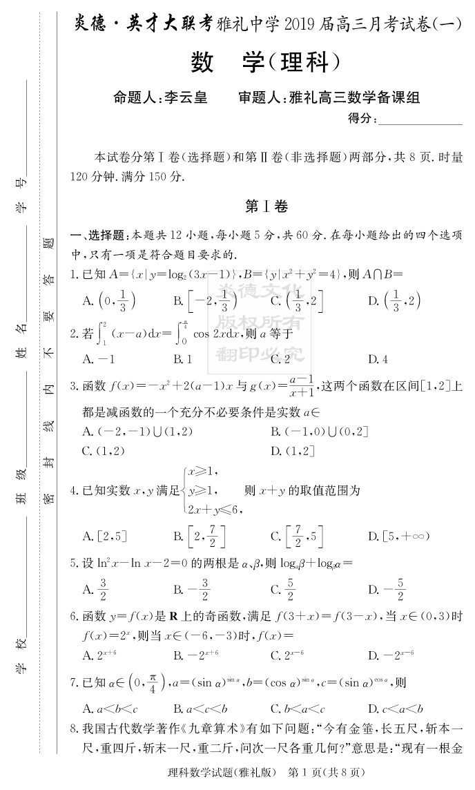 | 資源類別: | 名校月考 | |
