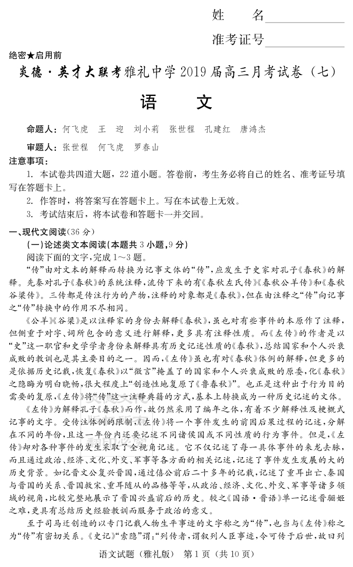 | 資源類別: | 名校月考 | |