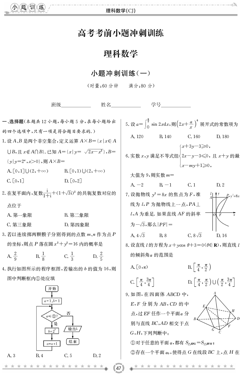 2026名師導學·高考總復習·小題量基礎周周考·數(shù)學