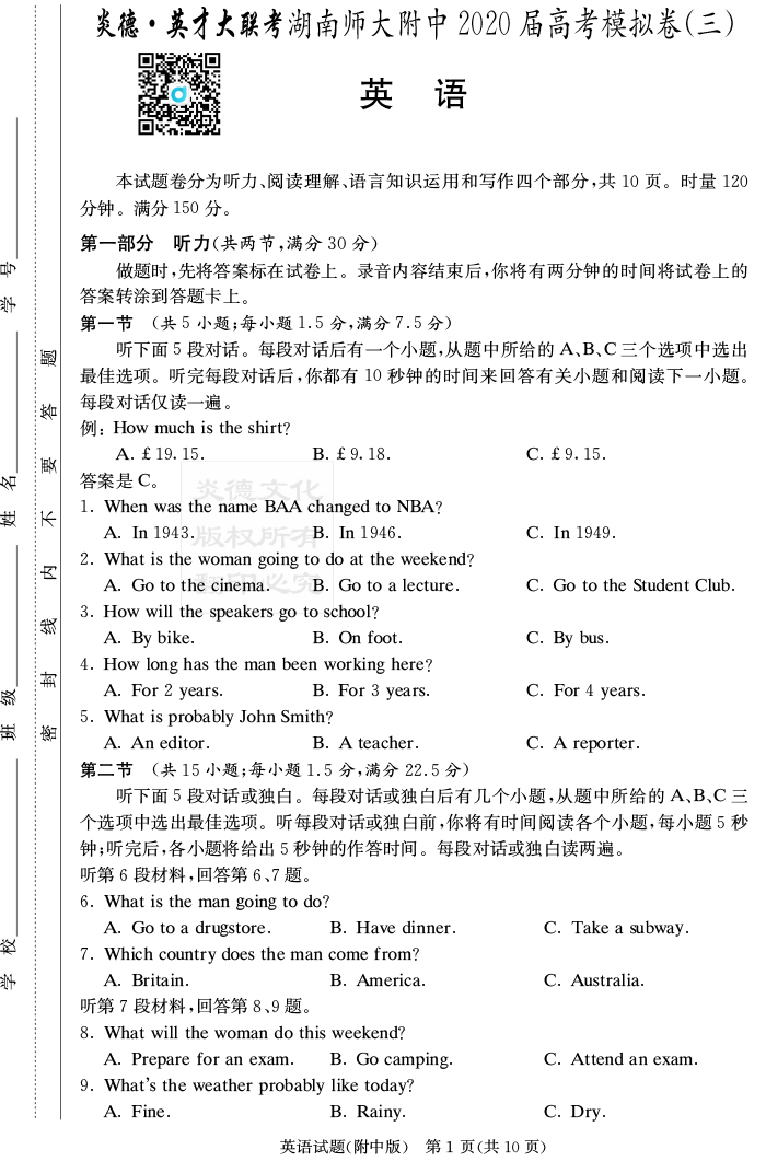 | 資源類別: | 名校月考 | |