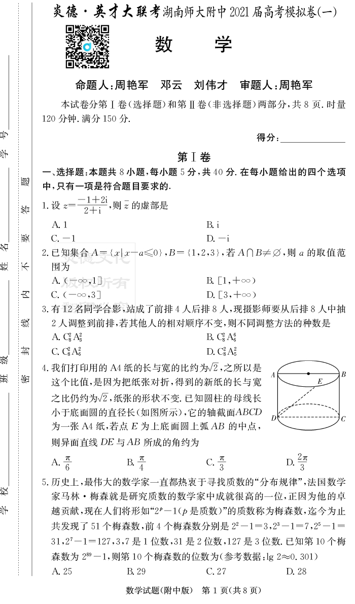 上一篇:【生物】炎德英才大聯(lián)考2021屆湖南師大附中高三8次月考(模擬一)