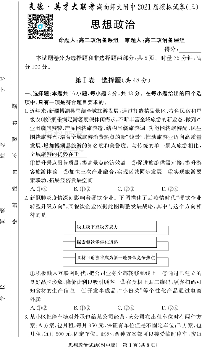 上一篇:【語文】炎德英才大聯(lián)考2021屆湖南師大附中高三10次月考(模擬三)