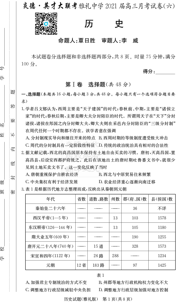 | 資源類別: | 名校月考 | |