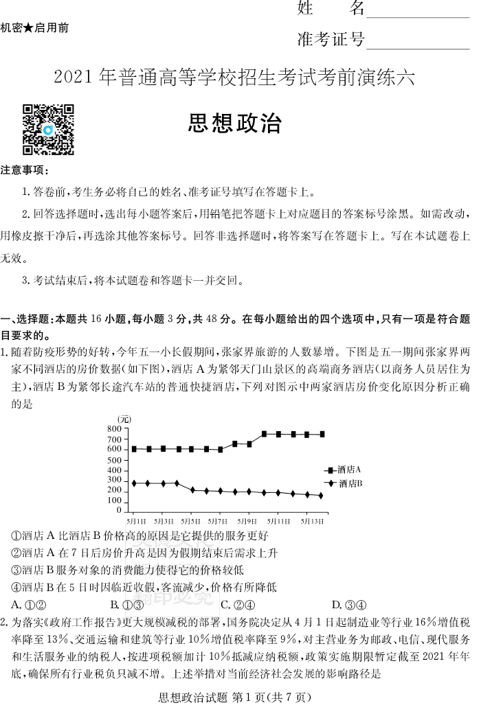 上一篇:【語文】2021年普通高等學(xué)校招生全國統(tǒng)一考試考前演練(六)