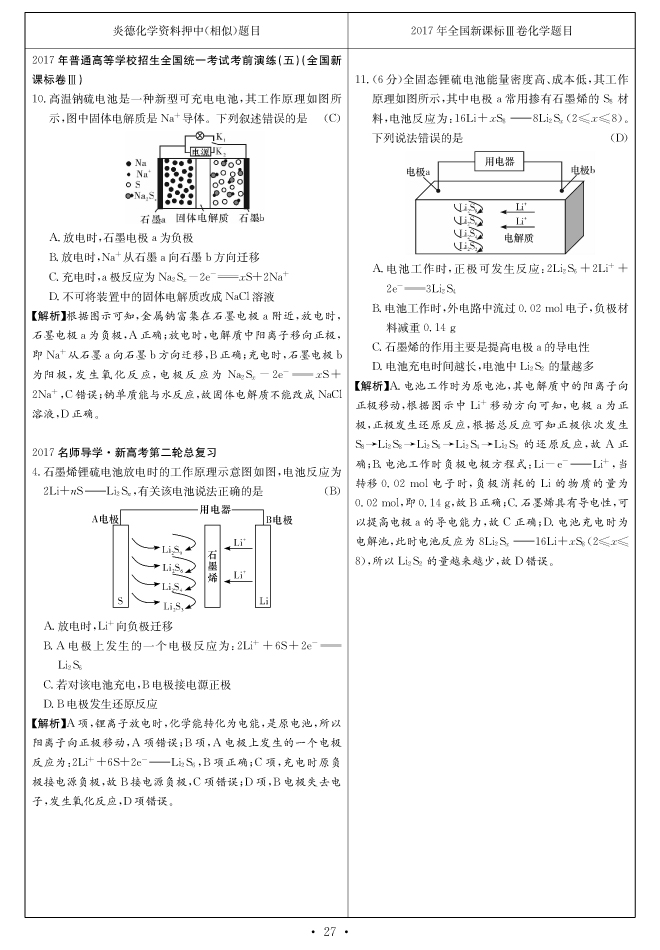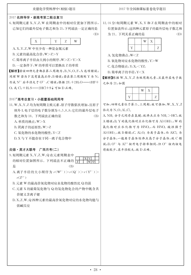 2017高考全國(guó)卷Ⅲ對(duì)分表-化學(xué)