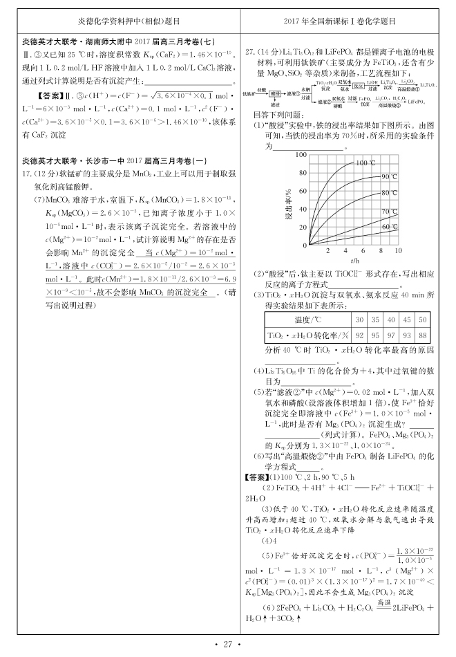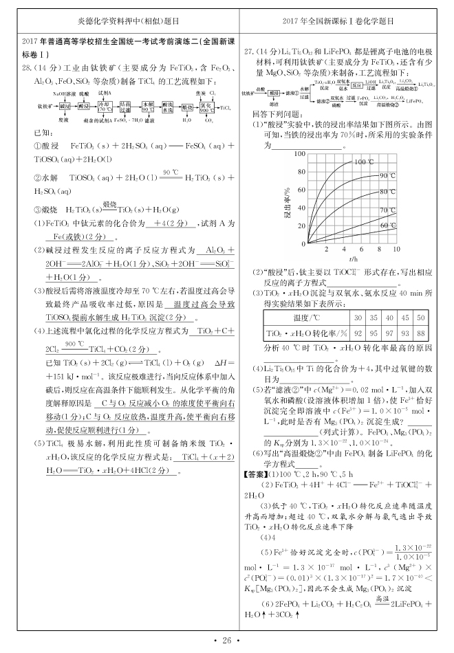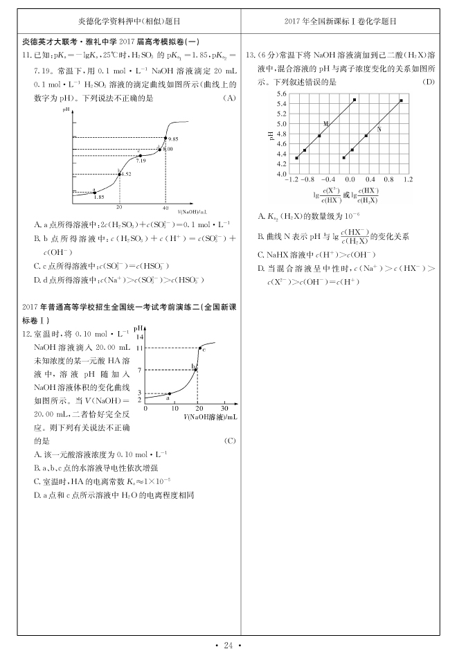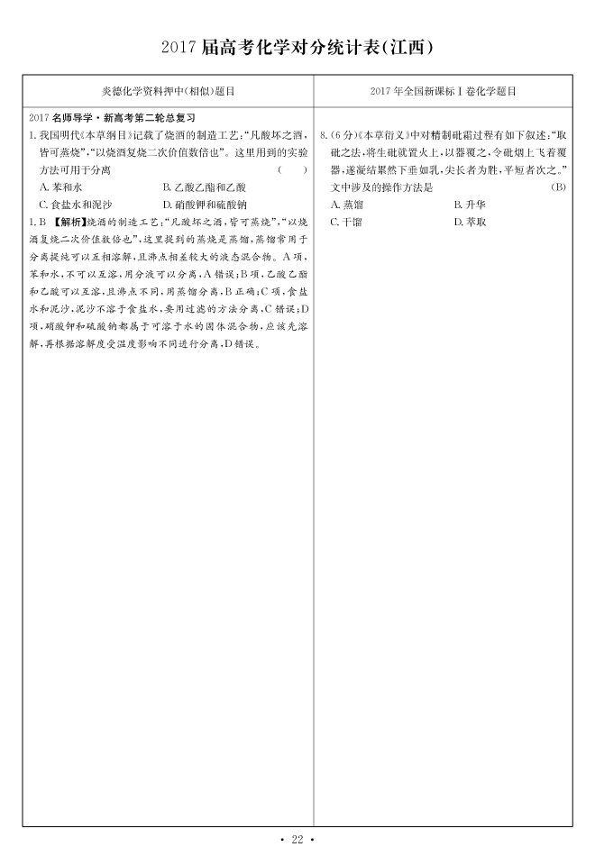 2017高考全國新課標(biāo)卷Ⅰ對分表-化學(xué)