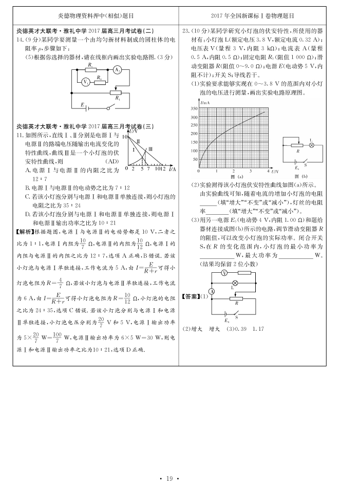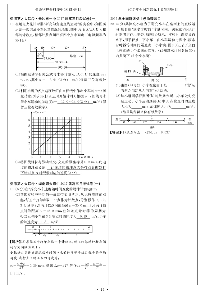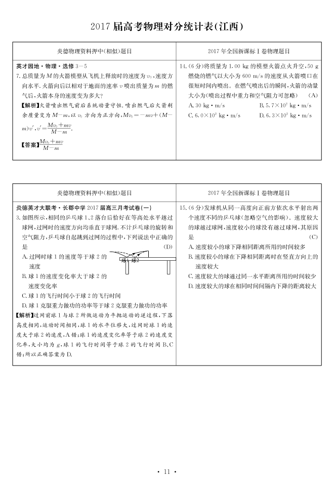 2017高考全國(guó)新課標(biāo)卷Ⅰ對(duì)分表-物理