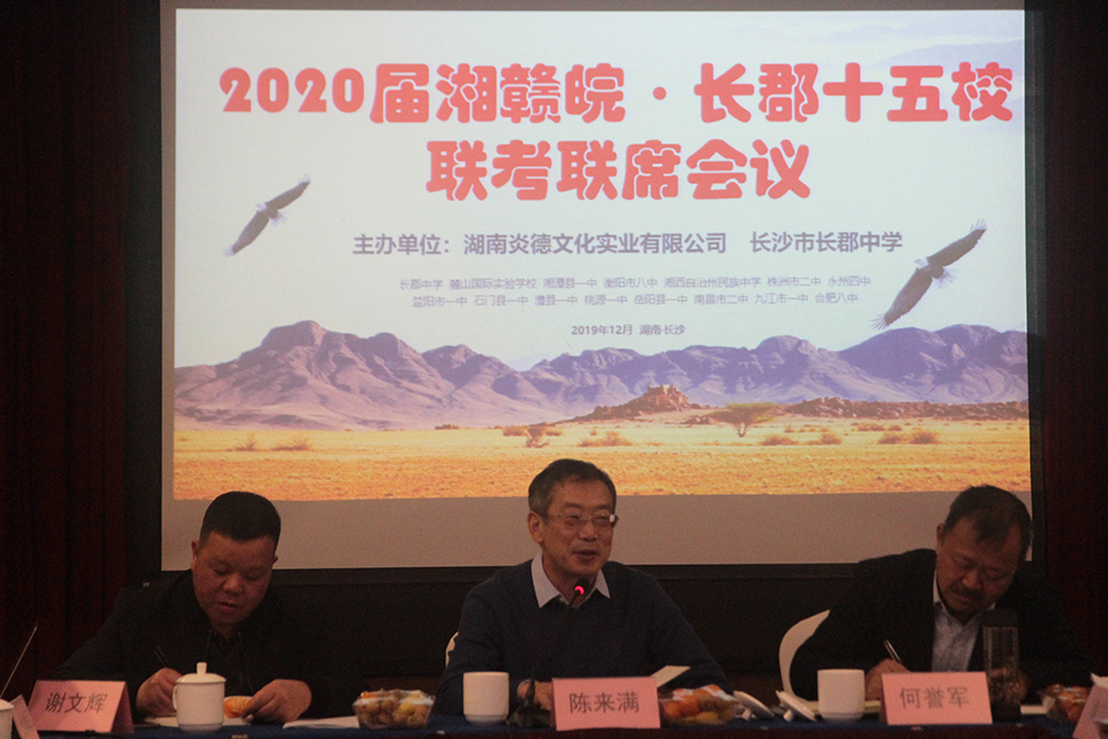2019年12月15日上午,2020屆湘贛皖·長(zhǎng)郡十五校聯(lián)考聯(lián)席會(huì)議在長(zhǎng)沙成功舉行。本次會(huì)議由湖南炎德文化實(shí)業(yè)有限公司主辦,來自湖南省內(nèi)的長(zhǎng)郡中學(xué)、麓山國際實(shí)驗(yàn)學(xué)校、岳陽縣一中、桃源縣一中、石門縣一中、澧縣一中、衡陽市八中、永州市四中、湘潭縣一中、湘西州民中、株洲市二中、益陽市一中,以及江西省南昌市二中、九江市一中和安徽省合肥市八中共十五所聯(lián)盟學(xué)校,共四十余位校領(lǐng)導(dǎo)、教務(wù)主任或年級(jí)主任參加了本次會(huì)議。