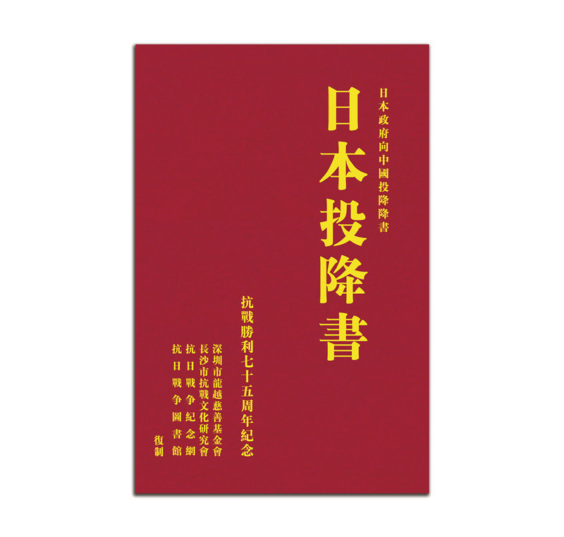 為慶祝日本投降75周年,深圳市龍越慈善基金會、抗日戰(zhàn)爭紀念網(wǎng)、長沙市抗戰(zhàn)文化研究會、抗日戰(zhàn)爭圖書館特別復制27375本(紀念抗戰(zhàn)勝利27375天)《日本投降書》,向關注抗戰(zhàn)歷史的國人免費贈送(需支付快遞費)。