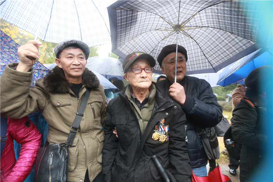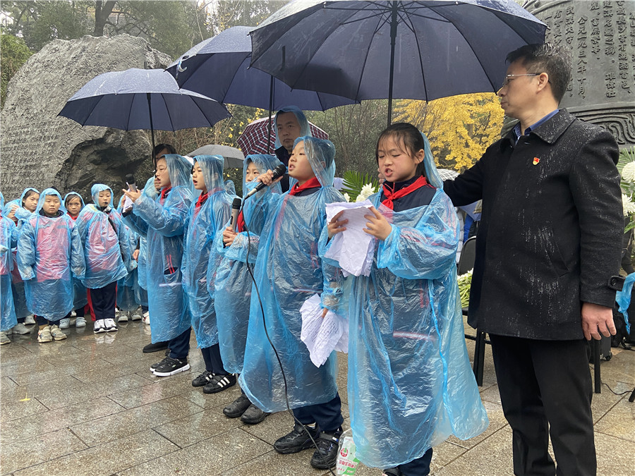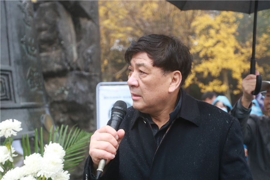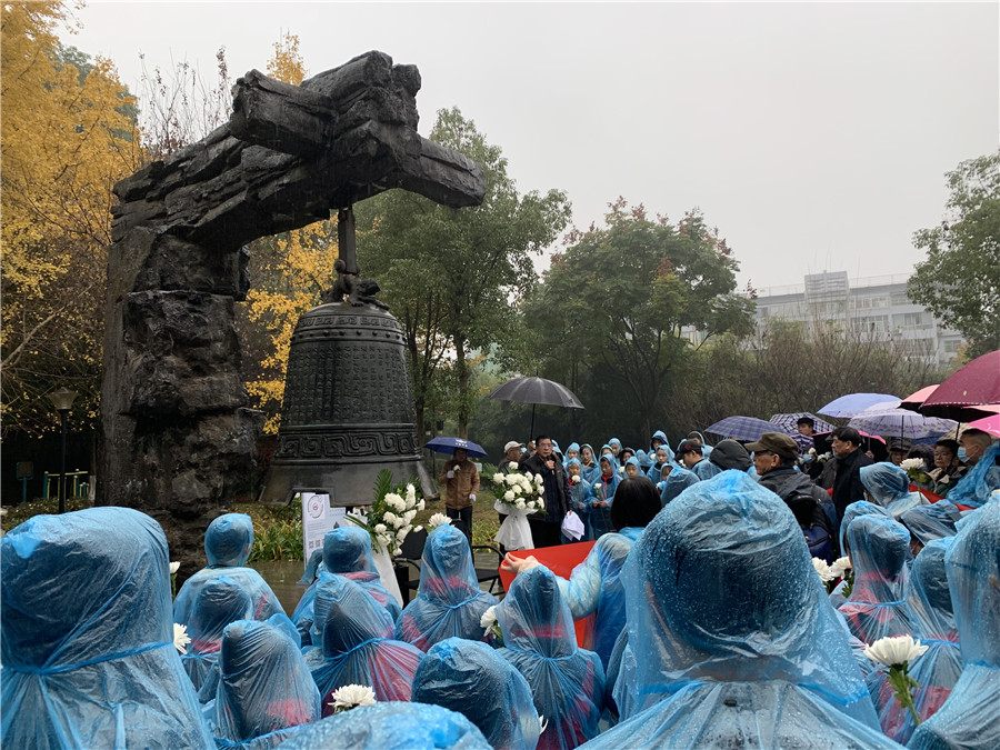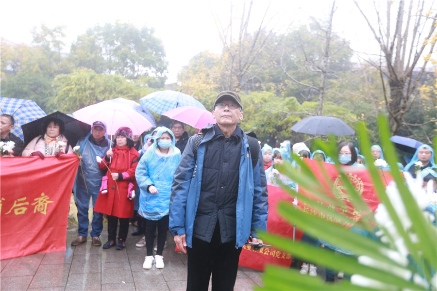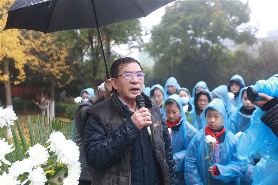 12月13日上午十點(diǎn),長(zhǎng)沙市抗戰(zhàn)文化研究會(huì)發(fā)起的緬懷抗戰(zhàn)英烈和悼念文夕大火罹難平民儀式在天心公園警世鐘下舉行。參加舉辦本次活動(dòng)的還有深圳市龍?jiān)酱壬苹饡?huì)、湖南省黃埔軍校同學(xué)會(huì)、長(zhǎng)沙市黃埔后裔聯(lián)誼會(huì)、長(zhǎng)沙天心閣公園管理處、抗日戰(zhàn)爭(zhēng)紀(jì)念網(wǎng)、抗日戰(zhàn)爭(zhēng)圖書館、星城實(shí)驗(yàn)三小(中嶺小學(xué))、長(zhǎng)郡月亮島第二小學(xué)、長(zhǎng)沙關(guān)愛抗戰(zhàn)老兵志愿服務(wù)隊(duì)、長(zhǎng)沙關(guān)愛抗戰(zhàn)老兵秋天班、湖南炎德文化實(shí)業(yè)有限公司、湖南炎德文化實(shí)業(yè)有限公司黨支部。參加活動(dòng)的嘉賓還有原湖南省政協(xié)副主席、中國(guó)國(guó)民黨革命委員會(huì)第十二屆中央委員會(huì)委員劉曉、抗戰(zhàn)老兵陳忠民、房可吉。共有上述舉辦單位的領(lǐng)導(dǎo)、志愿者、學(xué)生、老師、黃埔后裔以及市民共計(jì)三百余人冒雨參加了本次活動(dòng)!