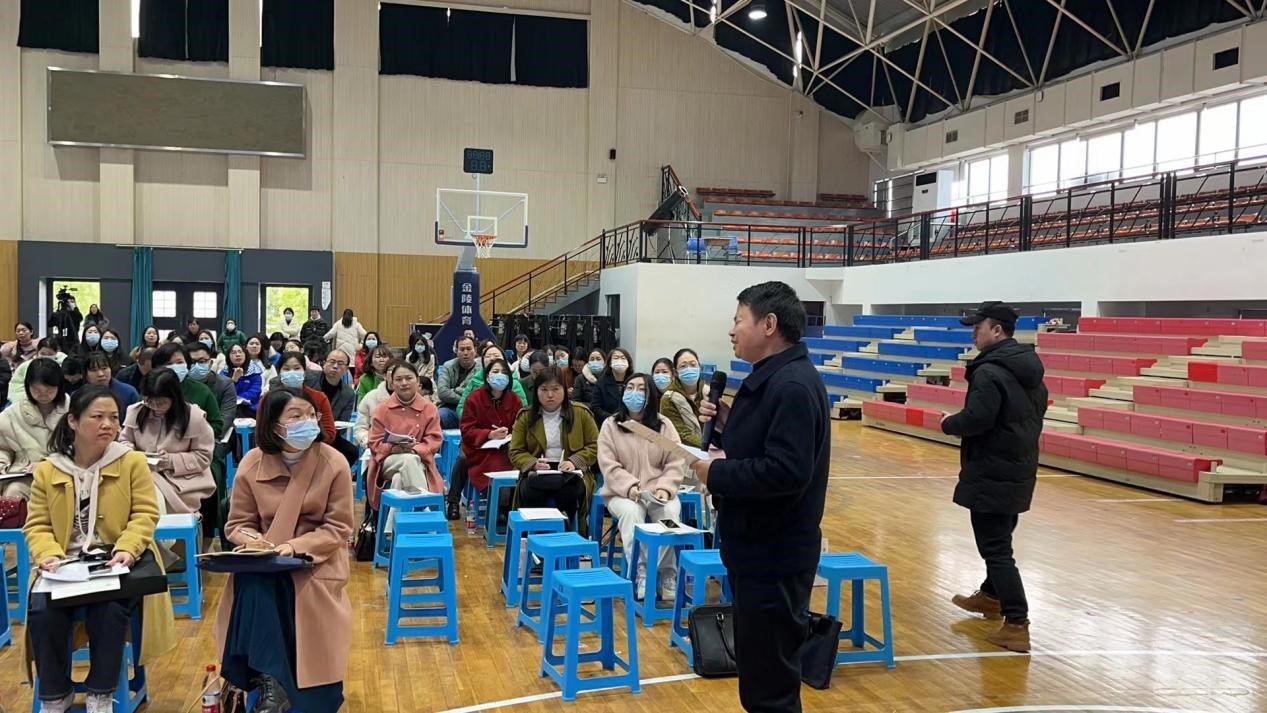 長(zhǎng)沙市六中體育館內(nèi),郭偉、李吉英、張旭娟三位老師對(duì)英語學(xué)科進(jìn)行精準(zhǔn)講解,對(duì)2023屆高考英語命題方向作出指引。