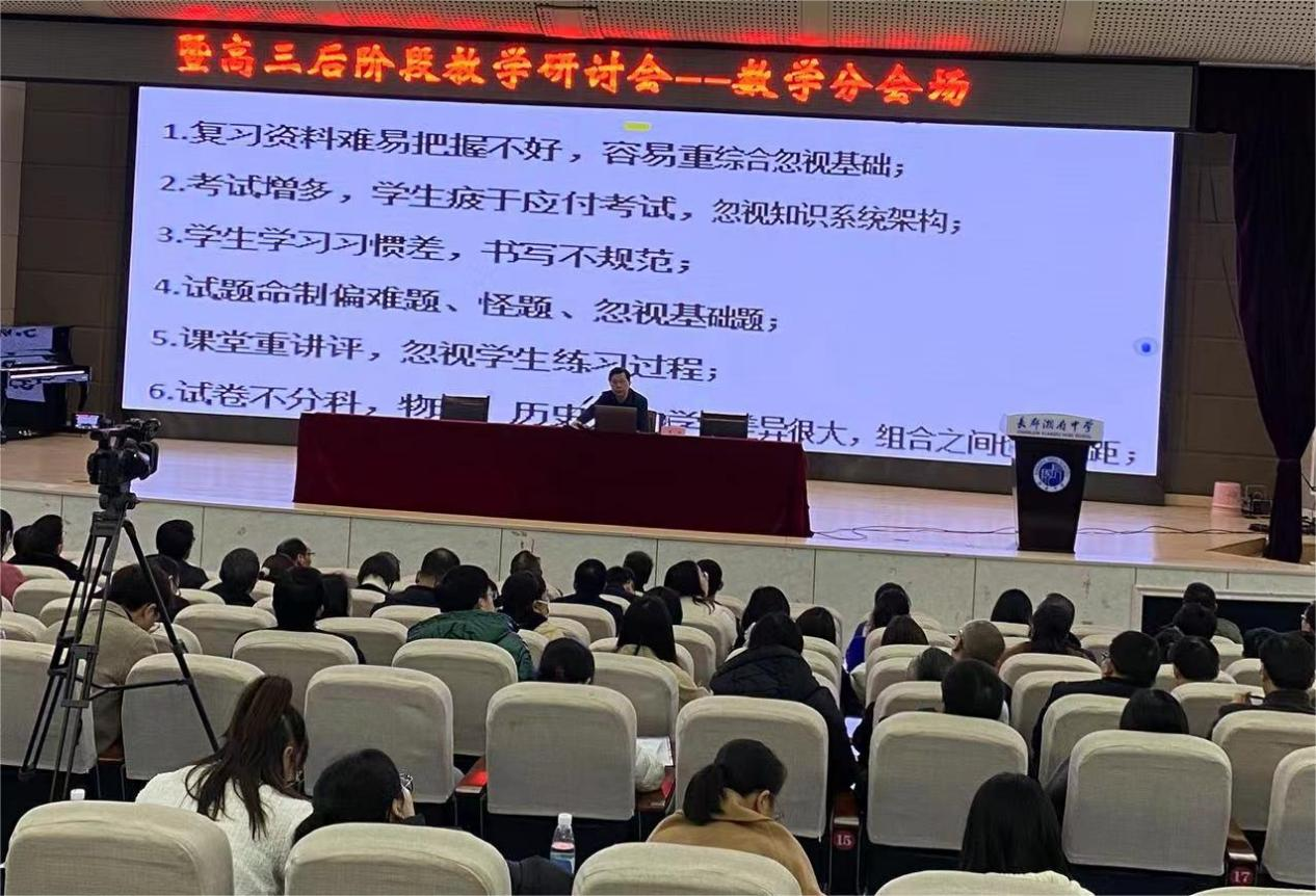 數(shù)學(xué)學(xué)科分會(huì)場(chǎng)位于城南的長(zhǎng)郡湘府中學(xué)逸夫樓,數(shù)學(xué)研討會(huì)由長(zhǎng)郡湘府中學(xué)教科室主任張作亮主持,來自湖南及江西共400余名高三數(shù)學(xué)教師參加了此次研討會(huì)。