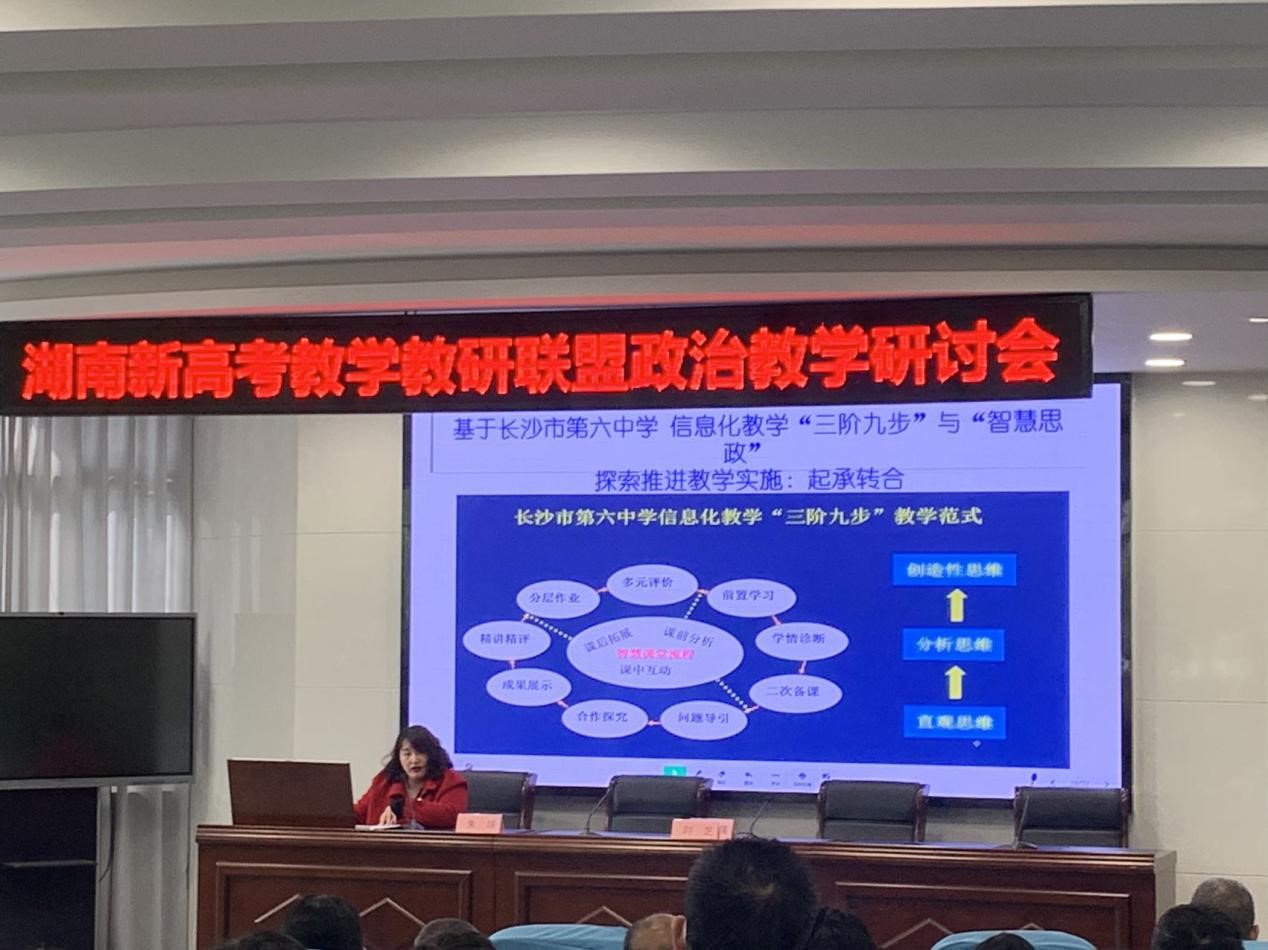 長(zhǎng)沙市六中政治教研組長(zhǎng)朱球老師展示長(zhǎng)沙六中信息化教學(xué)法。