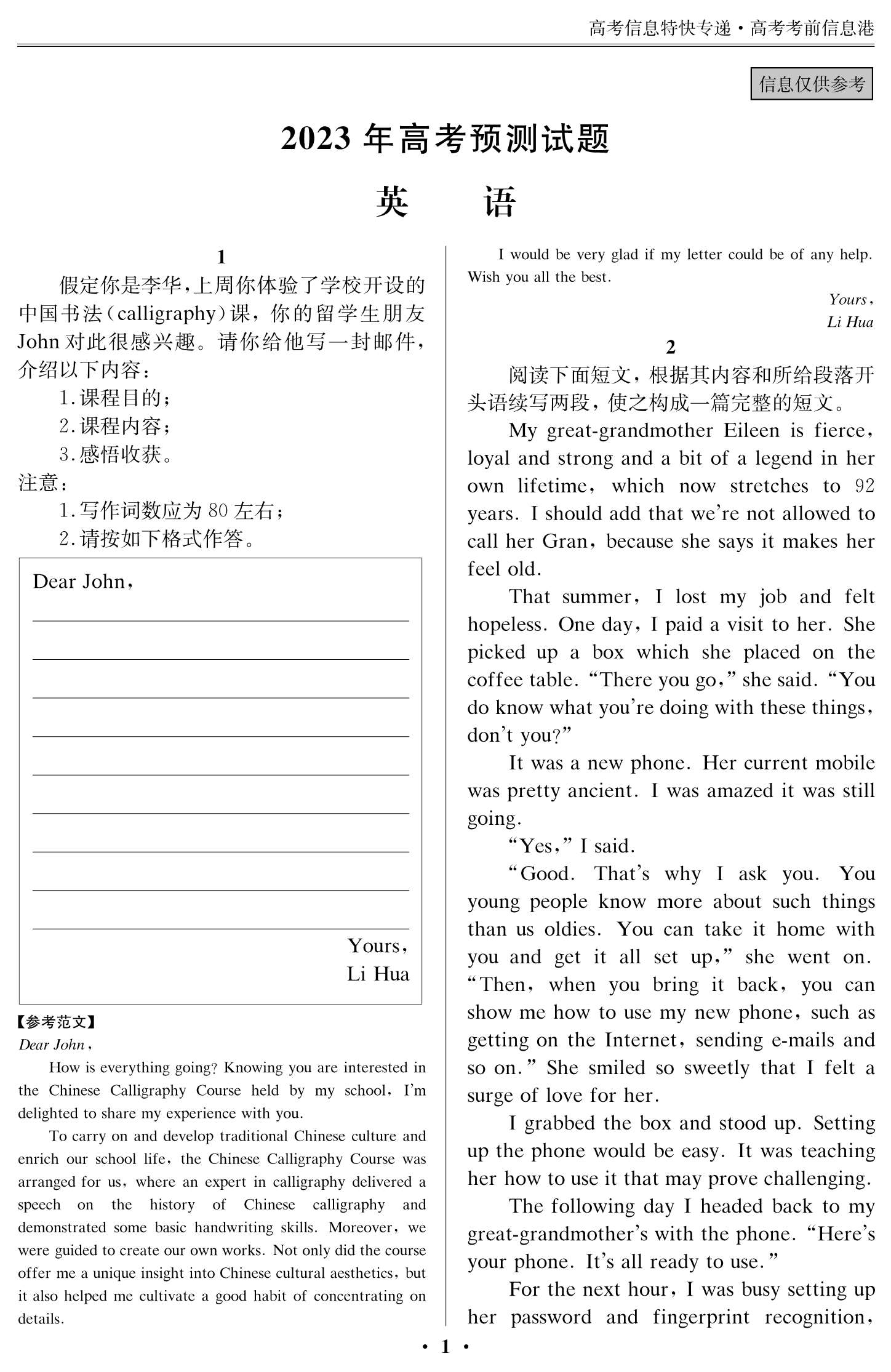 2023年高考考前預(yù)測信息補充內(nèi)容(一)5月30日
