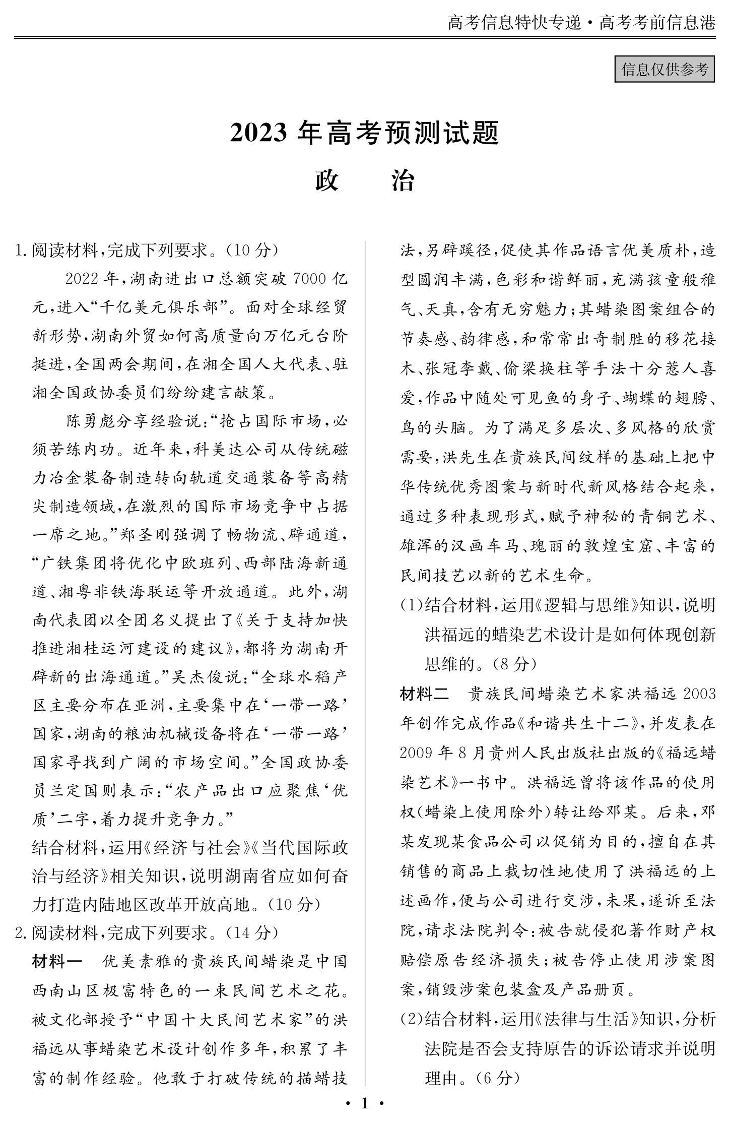 2023年高考考前預(yù)測信息補充內(nèi)容(一)5月30日
