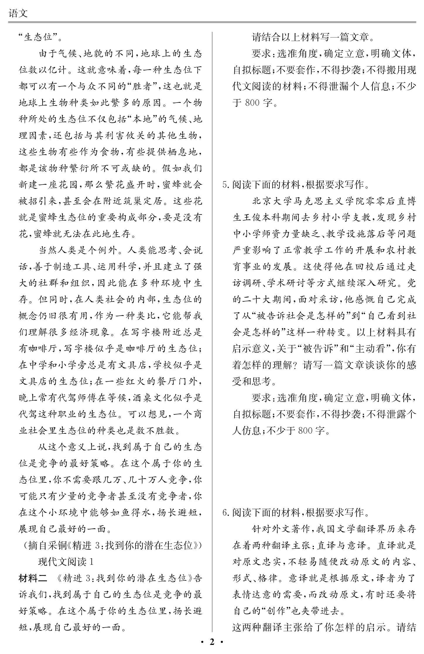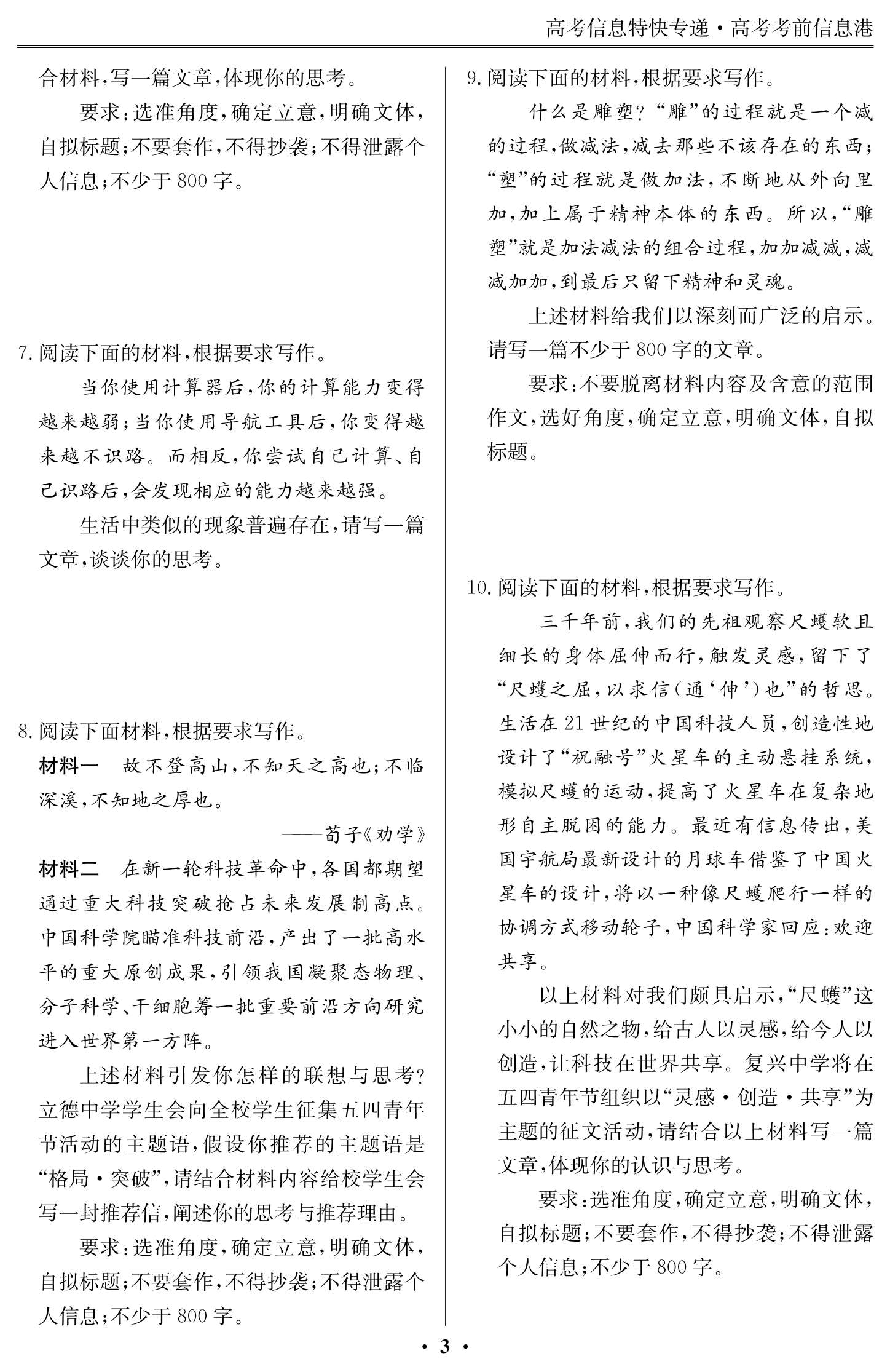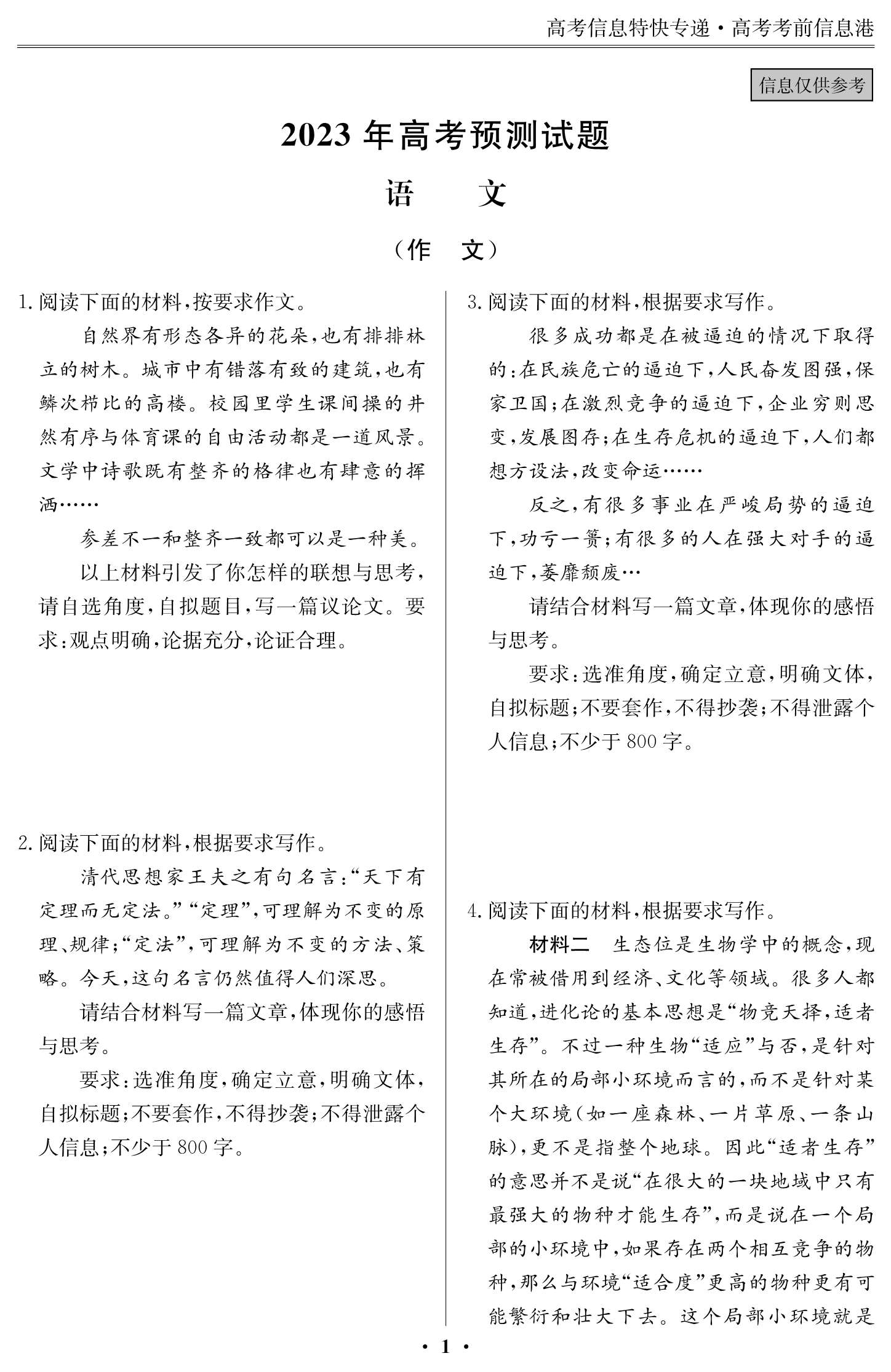 2023年高考考前預(yù)測信息補(bǔ)充內(nèi)容(一)5月30日