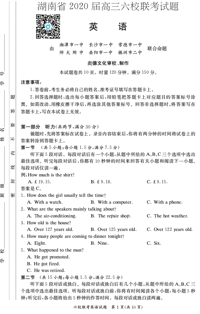 上一篇:【文綜】湖南省2020屆高三六校聯(lián)考(附中模擬一)